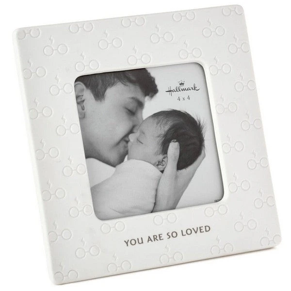 Harry Potter fans will love to show off a snapshot of their favorite little one in this charming picture frame. Decorated with a repeating embossed design of Harry’s iconic round-frame eyeglasses and lightning-bolt scar, the caption “You are so loved” gives a nod to your unconditional love. The sophisticated photo frame makes a great baby gift for new-parent fans of Hogwarts School of Witchcraft and Wizardry.