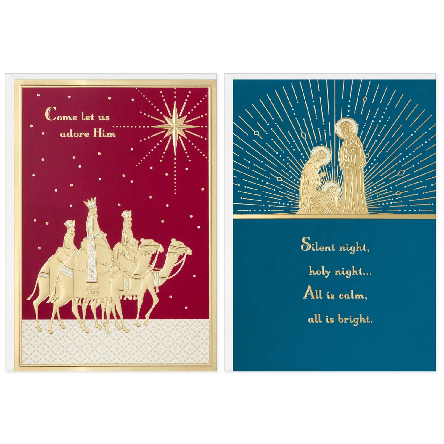 - Card Message(s): Holy Family design: Silent night, holy night… All is calm, all is bright.; In every little thing this Christmas, hope you see God’s love shining bright. Three wise men design: Come let us adore Him.; The light of faith, the warmth of home, the love of friends and family— A wish for all the greatest gifts of Christmas.