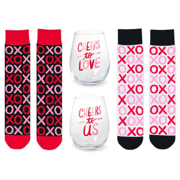 Pair chilled wine with warm toes when you crack open this cute Valentine’s Day gift set for you and your one-and-only. Our socks and wine glasses ensemble includes two pair of X-and-O designed socks, plus two stemless wine glasses with matching, toast worthy messages. All you need to complete the cozy evening in is a bottle of your favorite vintage!